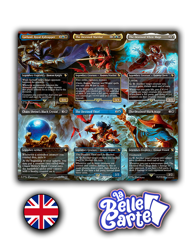 Cette Scenic Box collector réunit l’univers de Magic: The Gathering avec l’esthétique légendaire de Final Fantasy. Inspirée du moment Garland at the Chaos Shrine, cette édition propose des cartes à illustrations exclusives dans un coffret premium pensé pour les collectionneurs comme pour les joueurs.
